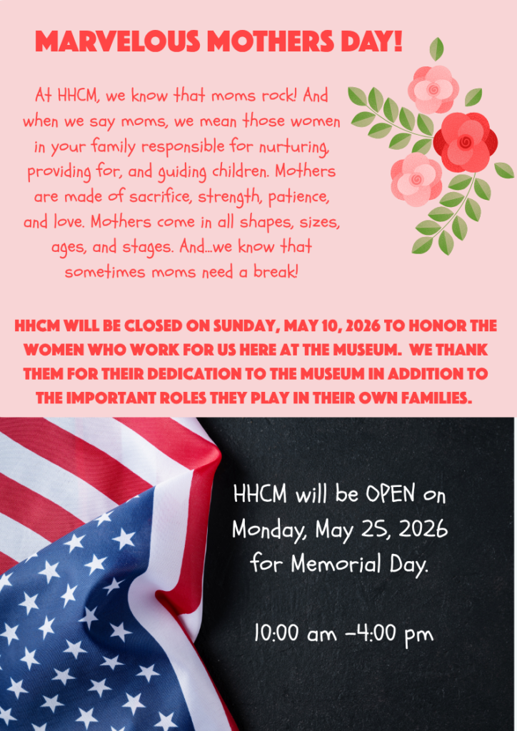 HHCM will be CLOSED on Sunday, May 10, 2026 for Mother's Day.